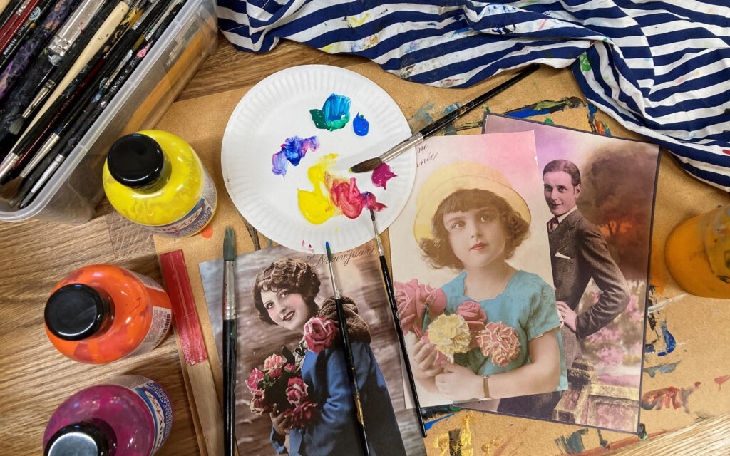 FamiljeaktivitetPyssel med drop-in: handkolorerade 20-talsfoton