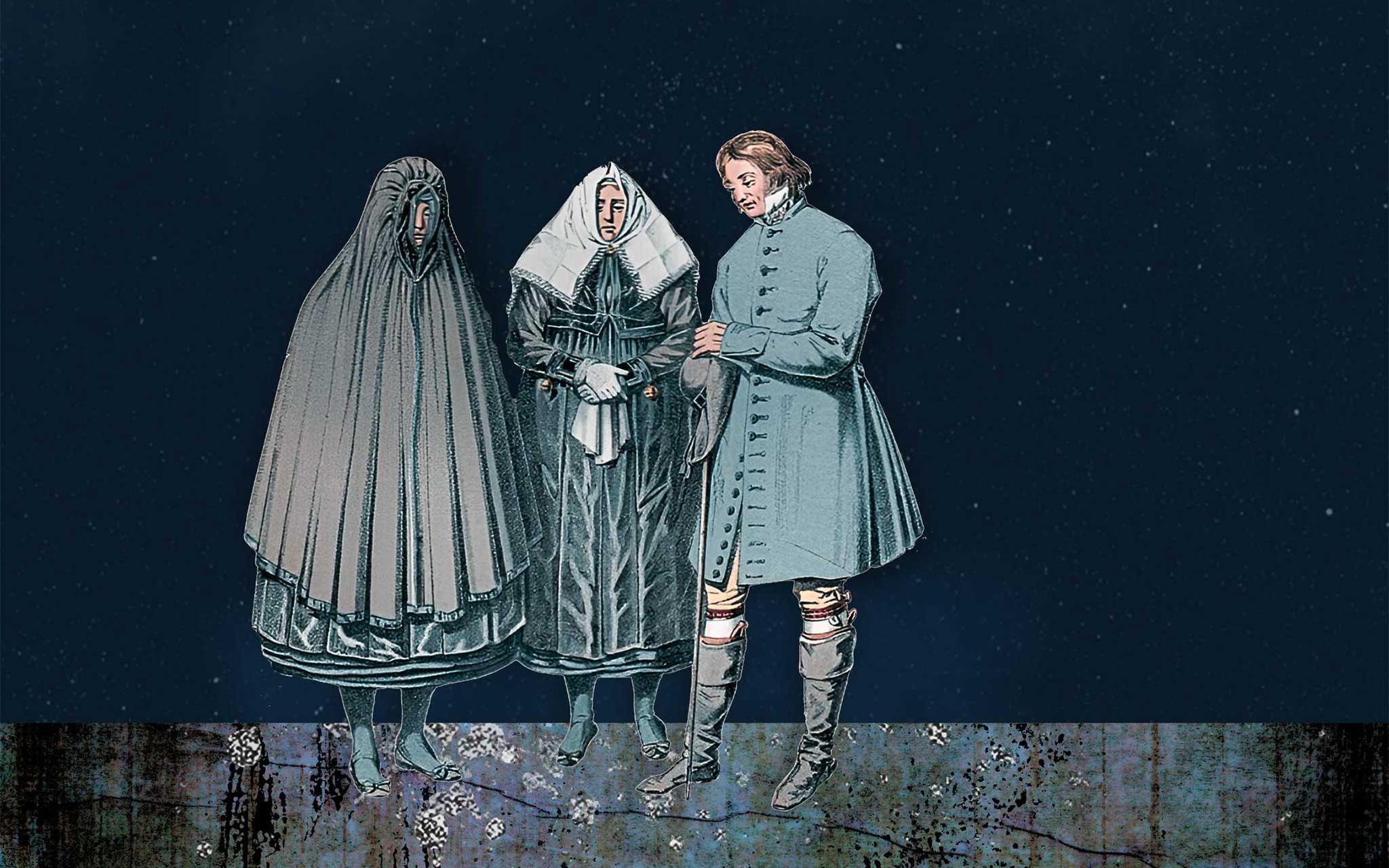 In earlier times, the most old-fashioned garments were worn on solemn occasions, particularly during mourning. Wearing a skirt or a cloak over the head like a mantle was common across various social classes during the 16th and 17th centuries in regions such as the Netherlands and north western Germany. In Scania, the custom persisted within folk culture, especially in traditionally conservative areas.