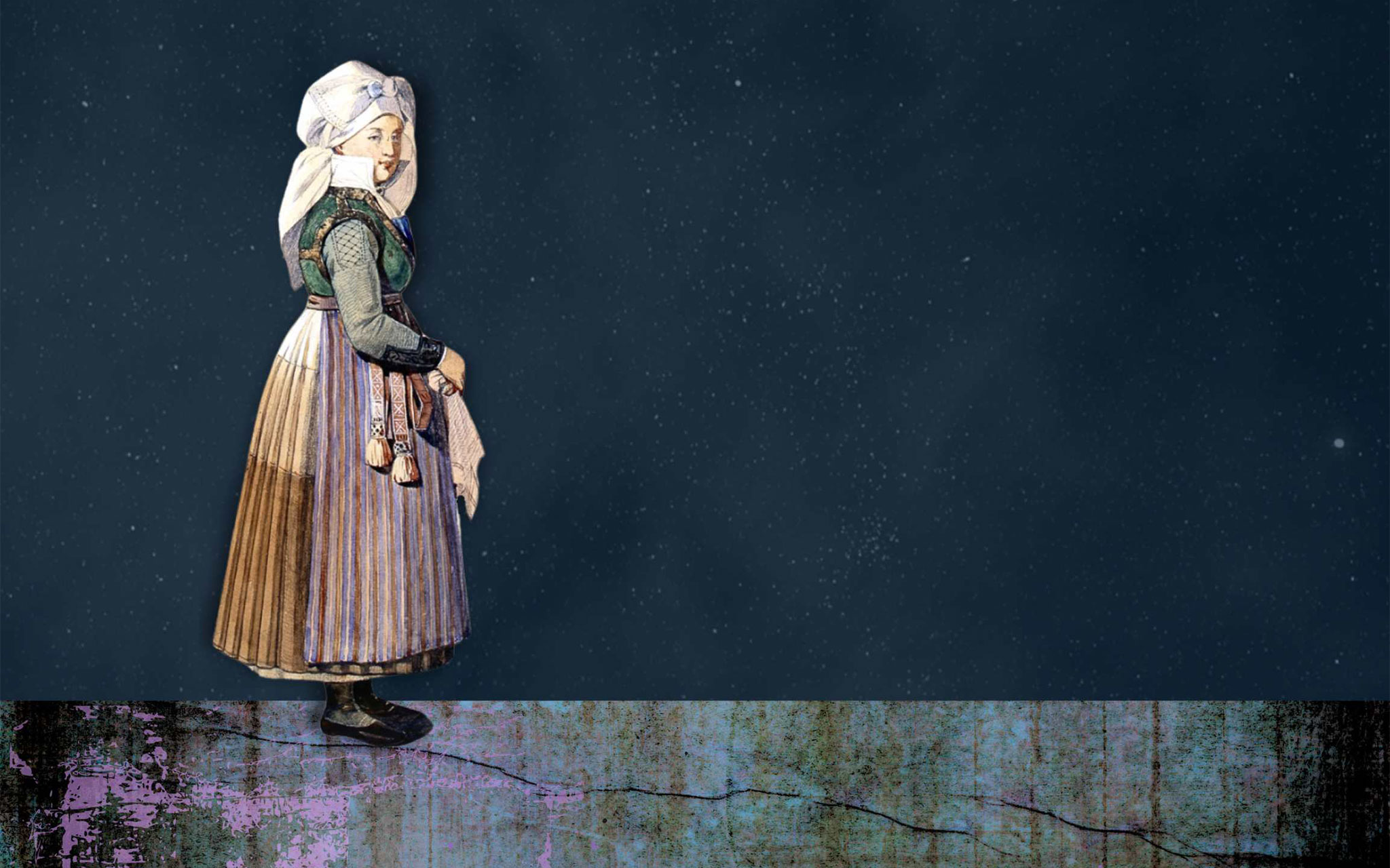 3Loose bodices began to appear in the 17th century. In southwestern Scania, they were sewn with padded rolls that added extra width over the hips. When women’s dress was separated into bodice and skirt, the single garment combining the two remained in use in more conservative areas. A narrow waist was not the ideal—wealth was displayed by wearing multiple skirts and creating generous volume, which was also practical. In rainy weather, a skirt could be pulled over the head.